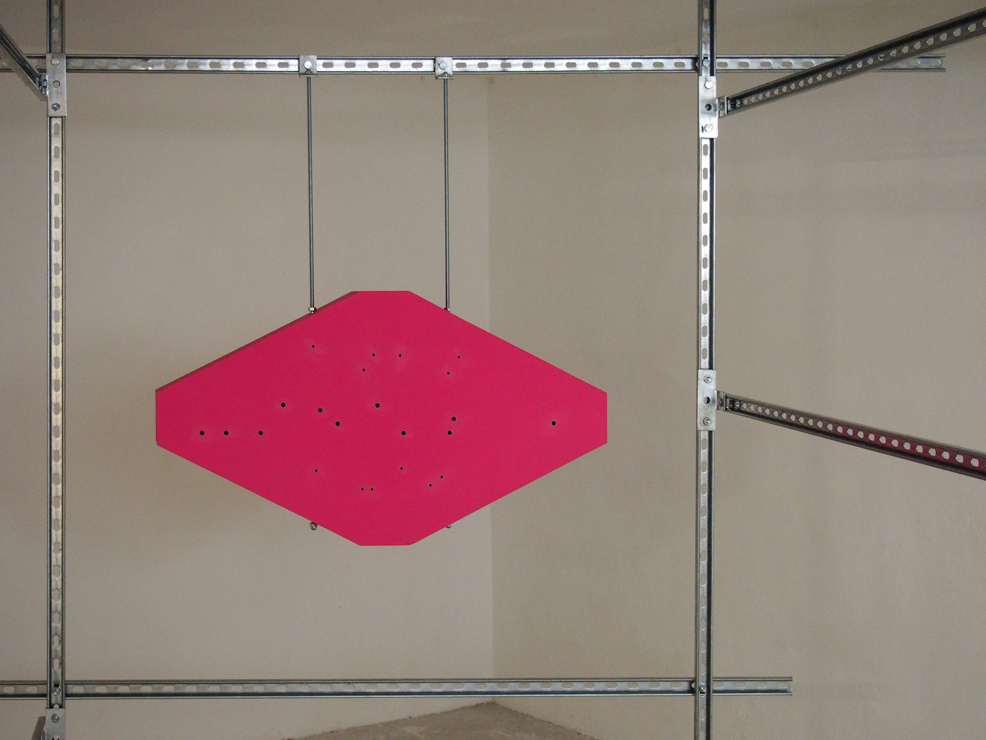A blank hanging sign with holes where neon is yet to go or may have already been