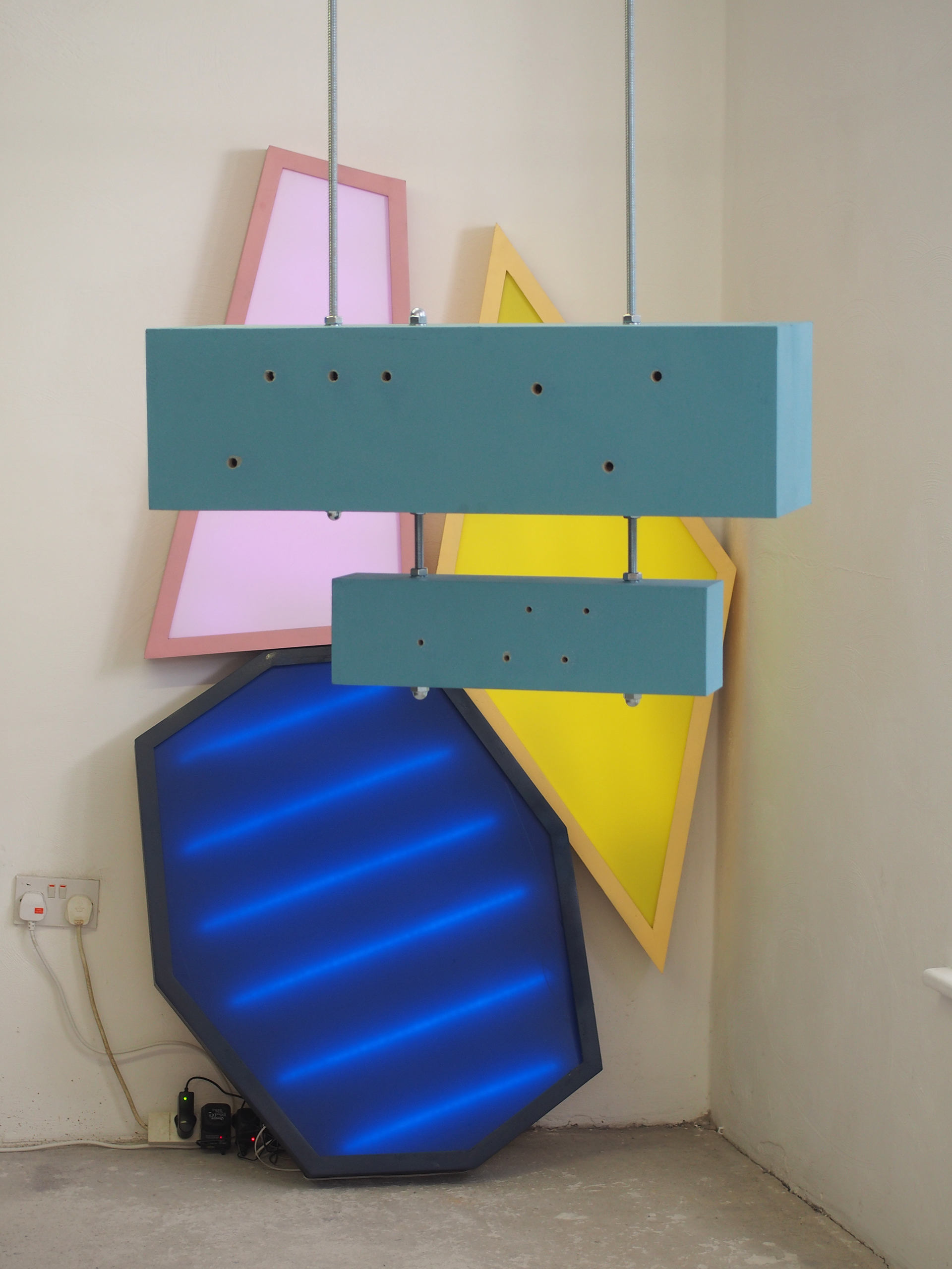 A blank hanging sign with holes where neon is yet to go or may have already been