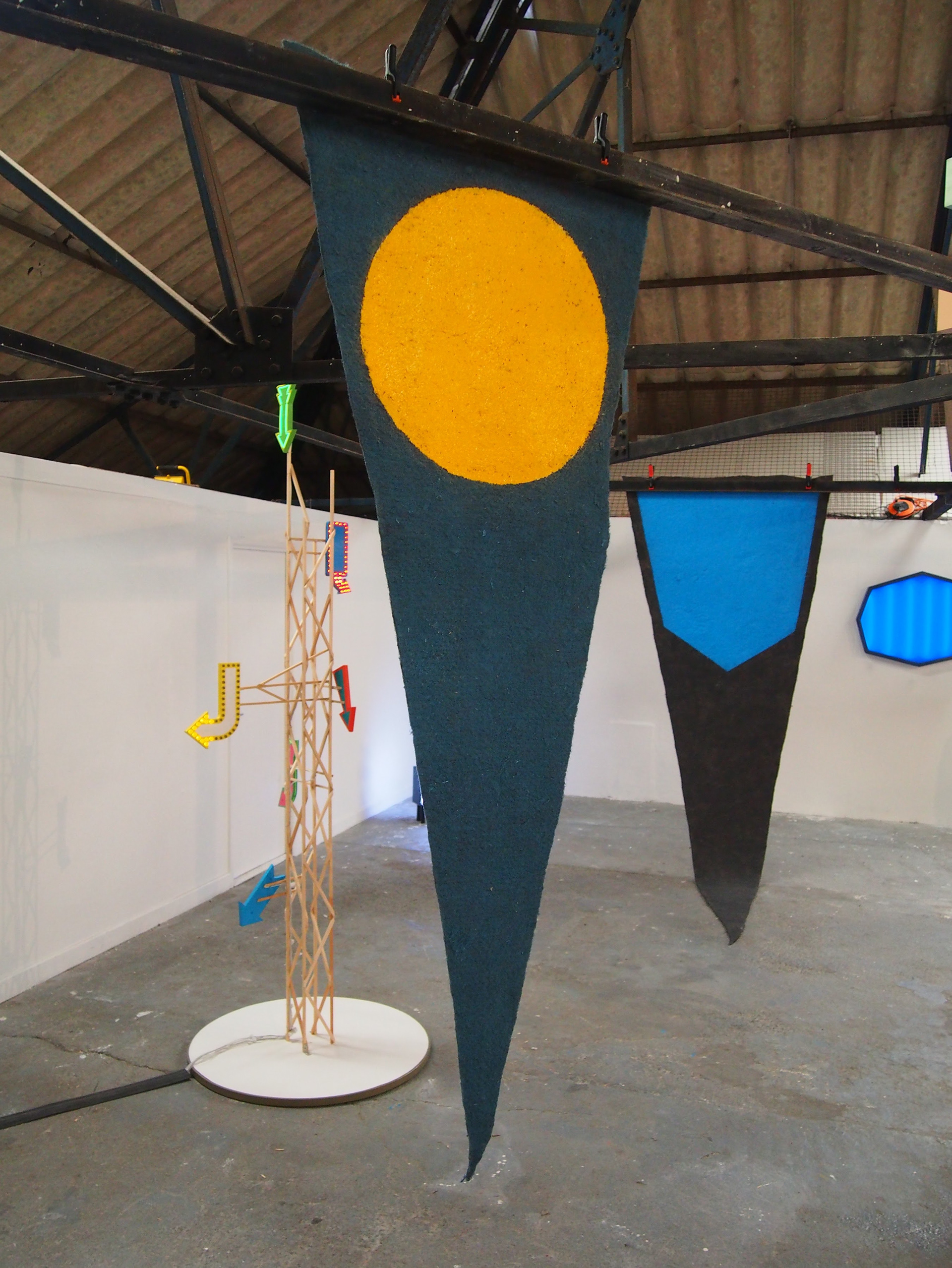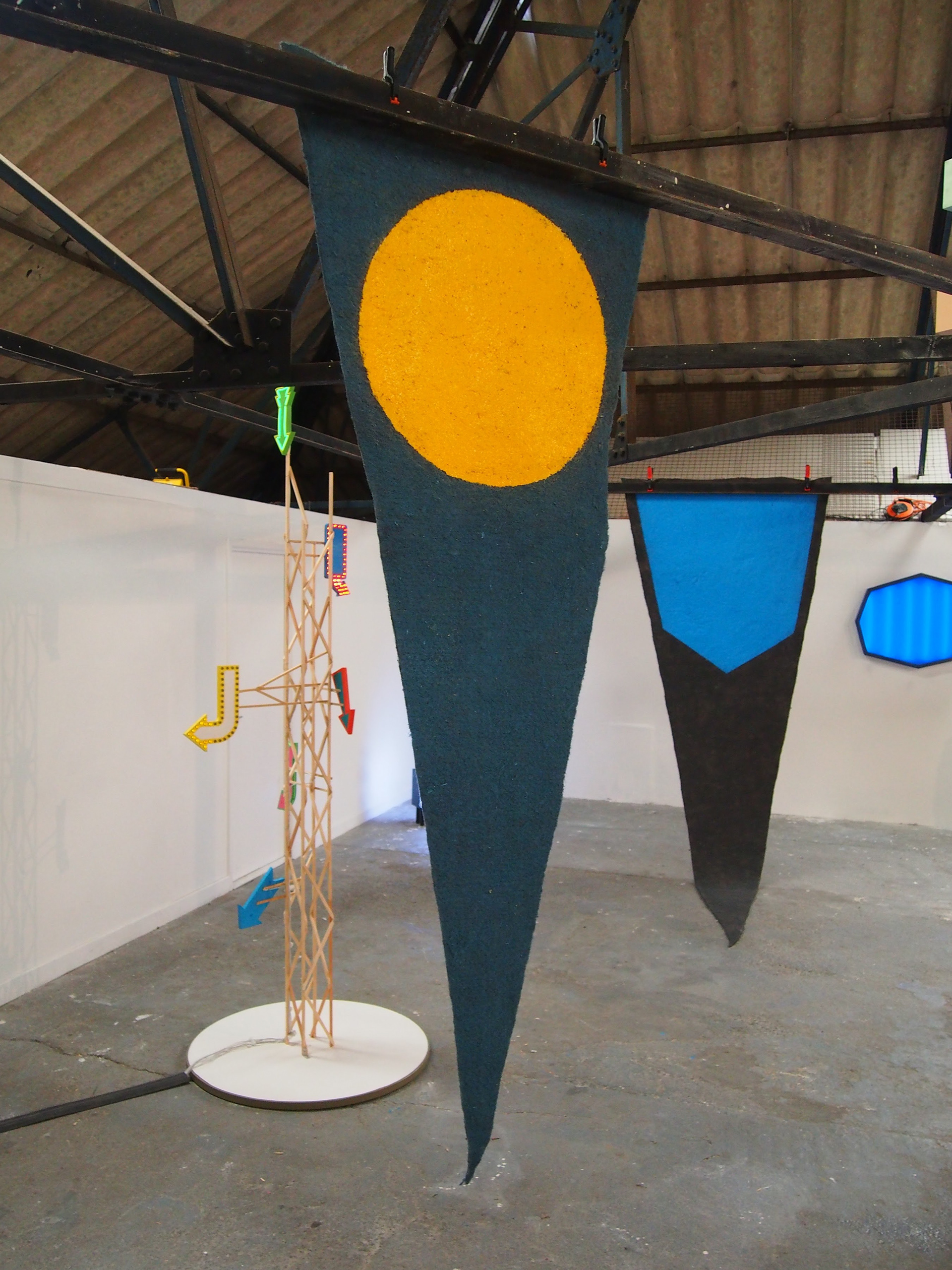 There is an air of the possibilities of childhood with the signs' predominant blankness suggesting a future as yet unwritten. The large pennants left blank evoke the idea of celebrating a place yet unvisited or a potential success or celebration.