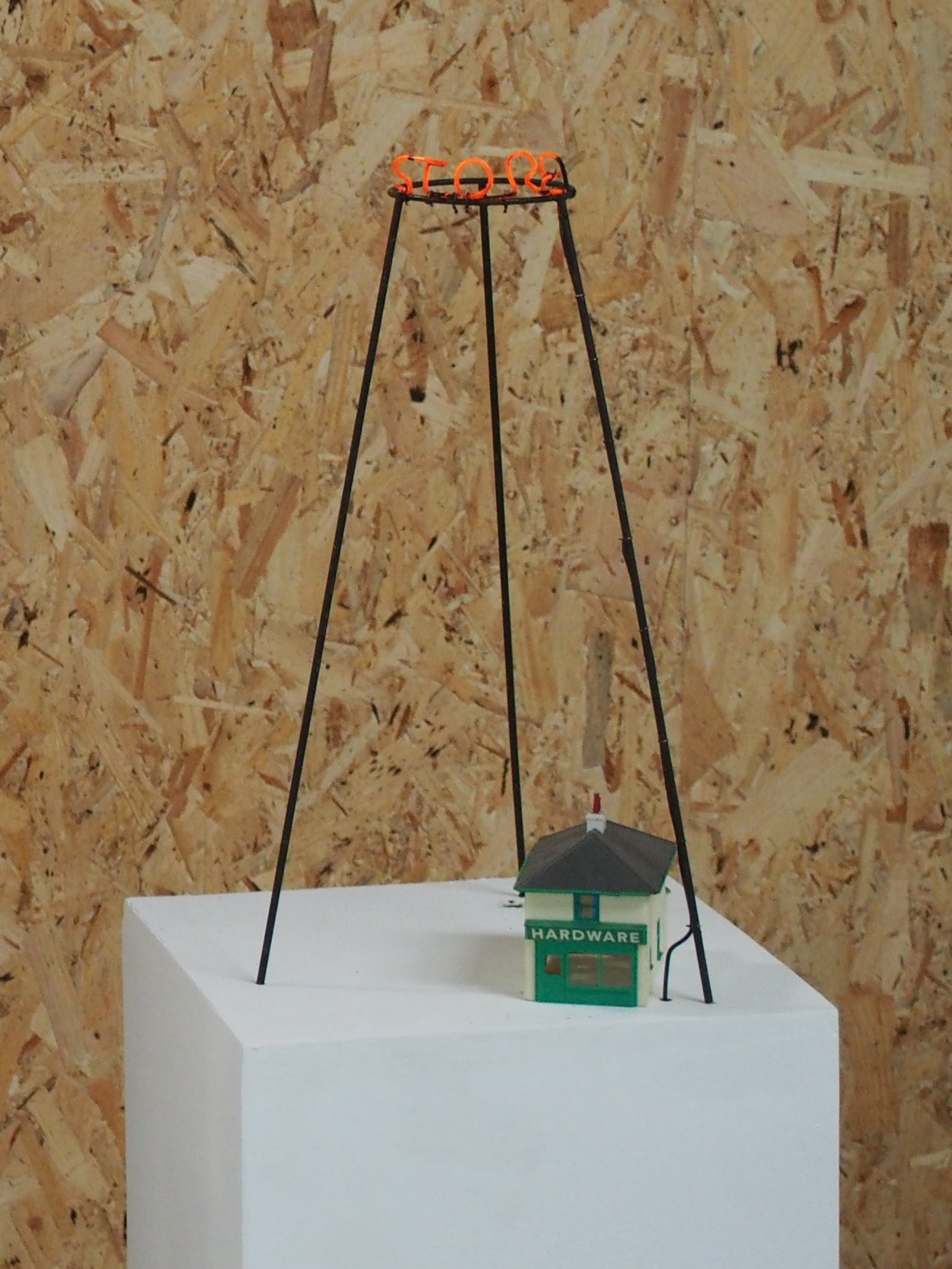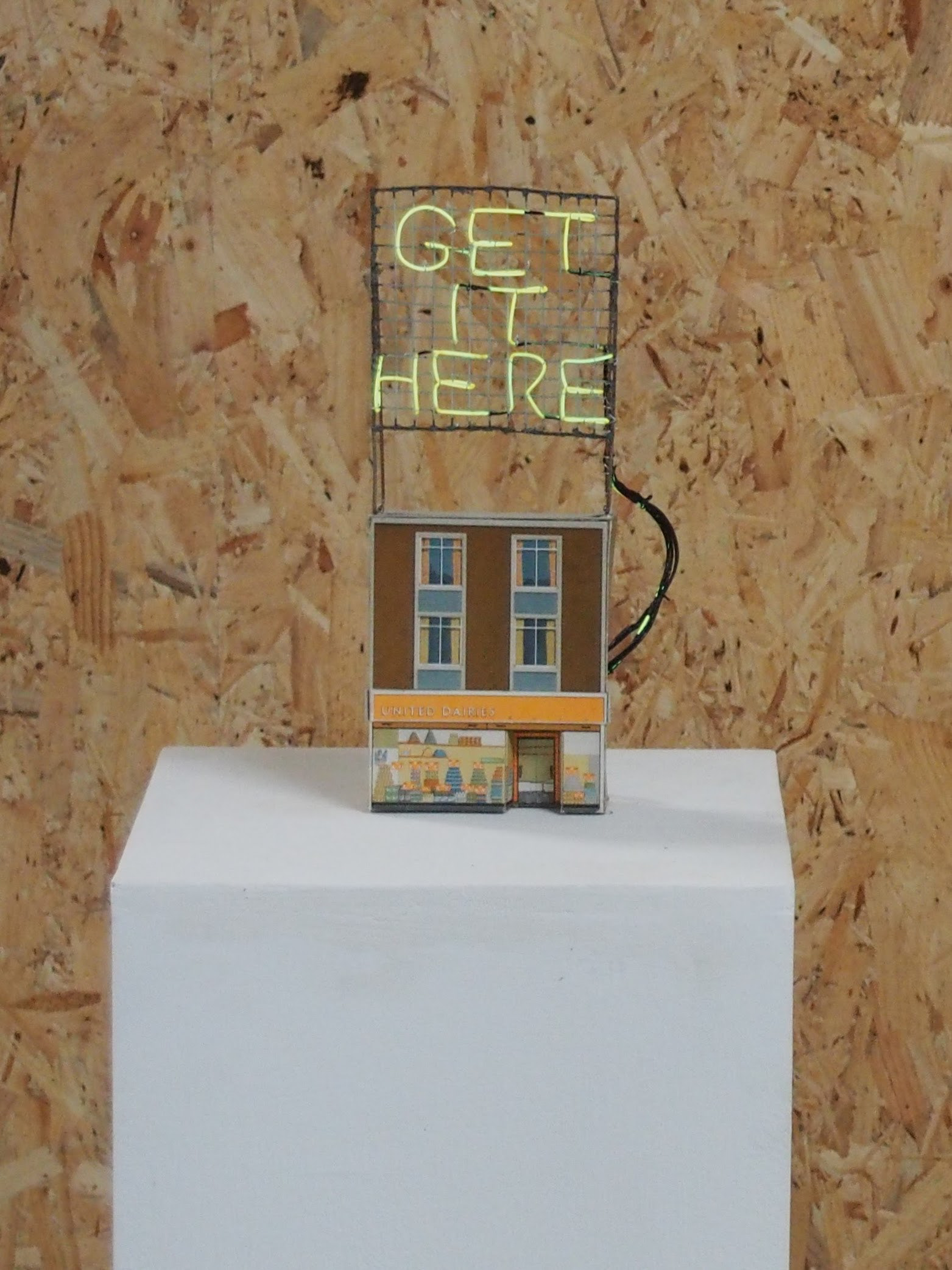 'Get It Here' features new sculptural work which investigates our relationship with the world around us. Drawing on personal experiences and utilising signage and set design as a medium throughout the show Robinson will be exploring themes of scale, modelmaking and set design to explore the paths we choose or that are determined for us throughout our lives.