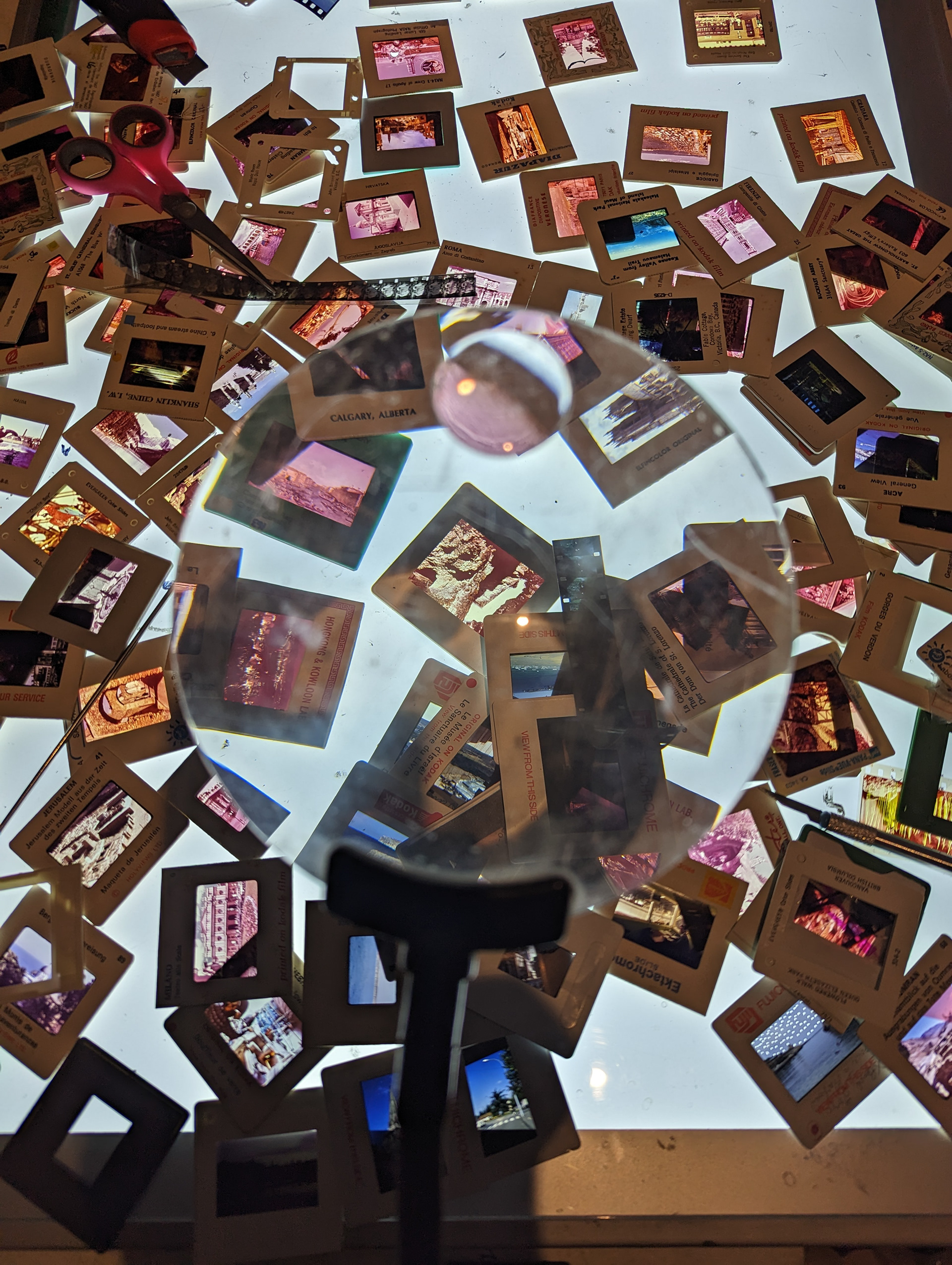 These are then projected through a slide projector to show the enlarged image. Higher quality images can be achieved by scanning with a specialist slide scanner.