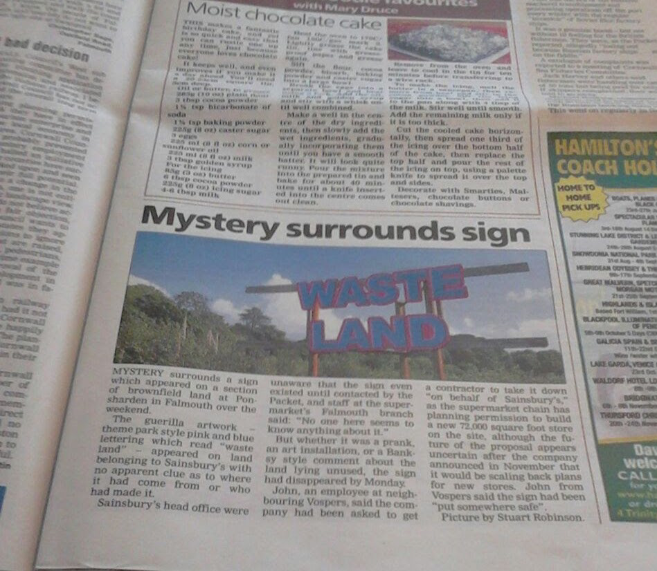 An intervention on a long empty plot of Land on the edge of Falmouth